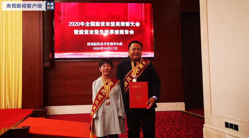 今天(17日)是我國(guó)第7個(gè)扶貧日,今天上午,國(guó)務(wù)院扶貧開發(fā)領(lǐng)導(dǎo)小組在北京召開2020年全國(guó)脫貧攻堅(jiān)獎(jiǎng)表彰大會(huì)暨首場(chǎng)脫貧攻堅(jiān)先進(jìn)事跡報(bào)告會(huì),對(duì)今年獲獎(jiǎng)的先進(jìn)集體和先進(jìn)個(gè)人進(jìn)行隆重表彰。來自云南省昆明市東川區(qū)烏龍鎮(zhèn)坪子村芭蕉箐小組的張順東、李國(guó)秀夫婦,憑借“一只手+兩條腿”相依為命、自強(qiáng)不息的戰(zhàn)貧脫貧事跡,榮獲2020年全國(guó)脫貧攻堅(jiān)獎(jiǎng)奮進(jìn)獎(jiǎng)。