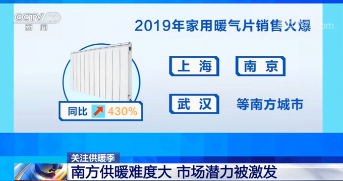 據統計,2019年,家用暖氣片銷量同比增長430%,而銷量增長的“主力軍”正是上海、南京、武漢等南方城市。