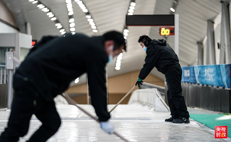 訓練間隙,國家雪橇雪車中心制冰師陳先古在賽道出發點等候。包括他在內,僅20人的制冰團隊負責打磨修整長達1975米的中國首條雪車雪橇賽道,成為全中國獨一無二的技術團隊,他們制服背后印著5個醒目的粗體字:中國制冰師。
