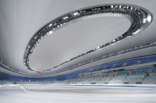 新建的國家速滑館,是北京主賽區(qū)標(biāo)志性場館,也是唯一新建的冰上競賽場館,被形象地稱為“冰絲帶”。國家速滑館利用2008年奧運(yùn)會曲棍球和射箭的臨時場地進(jìn)行建設(shè),擁有亞洲最大的全冰面設(shè)計,冰面面積達(dá)1.2萬平方米。