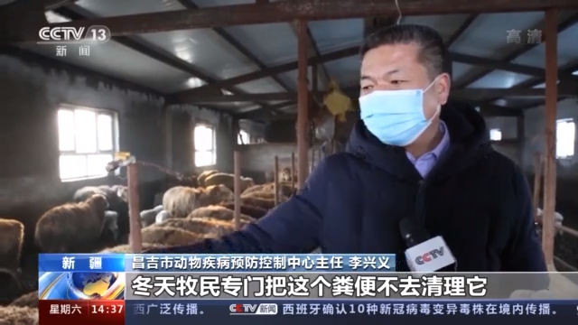昌吉市動物疾病預(yù)防控制中心主任 李興義:冬天牧民專門把這個(gè)糞便不去清理它,厚厚的這一層糞便,發(fā)酵以后它產(chǎn)生一定熱量,羊在這個(gè)糞便上,就像溫床一樣的,起個(gè)保暖作用。