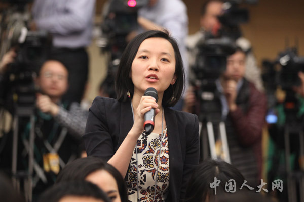 3月11日上午,十二屆全國人大二次會議在梅地亞中心舉行記者會,中國人民銀行行長周小川等五位嘉賓就“金融改革與發展”的相關問題回答中外記者的提問。圖為中國證券報、中證網記者提問。羅榮 攝