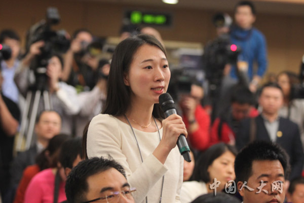 3月11日上午,十二屆全國人大二次會議在梅地亞中心舉行記者會,中國人民銀行行長周小川等五位嘉賓就“金融改革與發展”的相關問題回答中外記者的提問。圖為中國國際廣播電臺、國際在線記者提問。羅榮 攝