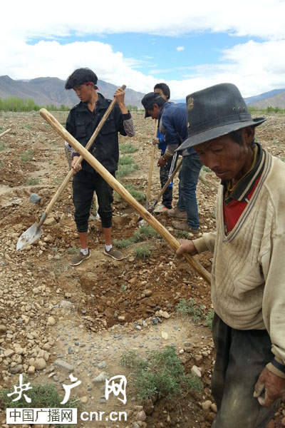 央廣網日喀則7月28日消息(記者劉飛 普布次仁)在西藏雅魯藏布江北岸,柳果村村民米瑪正在種植沙棘,一鐵鍬下去,幾乎沒有碰到土,而全是鵝卵石,發出乒乓的響聲。他說,這里常年風沙大,沙子一直吹到村子里。