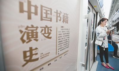 4月23日是世界讀書日,一列以“書香”為主題的地鐵列車在四川成都地鐵1號線上運行。“書香號”專列以“中國書籍演變史”為主線,按照“甲骨—簡牘—縑帛—石經—紙書—未來之書”的主題,將車廂打造成形態各異的書籍,讓市民步入其中,仿佛置身書海。