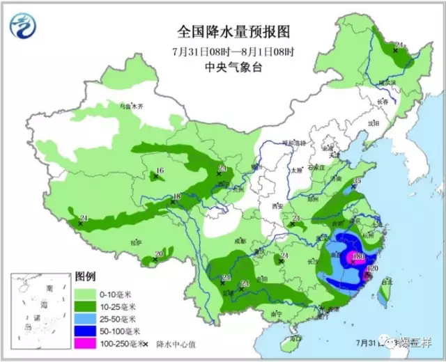 中央氣象臺7月31日10時繼續發布暴雨黃色預警:預計7月31日14時至8月1日14時,福建、廣東東部、江西東部和北部、浙江西南部、安徽西南部、湖北東部、河南東南部、山東東南部等地有大雨或暴雨,其中,福建西北部和東部、江西東北部等地的部分地區有大暴雨(100~200毫米),最大小時雨強可達60毫米。