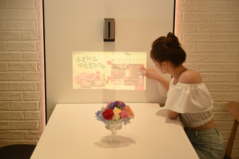 除了“情緒地帶”,智慧餐廳還提供了多元化的互動服務。門店等位區有一整面具有奇幻動感效果的投影互動墻,通過獨特的觸摸啟動可以探索必勝客的比薩從原料種植、加工、生產,一直到制作成品、奉客、外送等一系列過程,為顧客提供趣味十足的多感官虛擬互動體驗,讓無聊的等位時間也變得興味盎然。