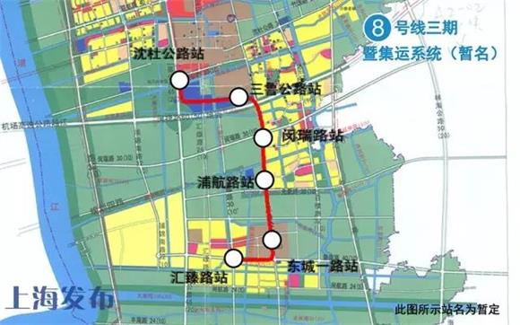 8號(hào)線三期自二期終點(diǎn)站沈杜公路站至匯臻路站,全長6.6公里,車站6座。目前車站已全部封頂。(8號(hào)線三期與以往軌道交通相比,有兩項(xiàng)主要?jiǎng)?chuàng)新,一是系統(tǒng)制式新:采用高度集成的APM膠輪路軌系統(tǒng);二是功能定位新:是中運(yùn)量城市末端客流收集系統(tǒng),為大運(yùn)量軌道交通系統(tǒng)的補(bǔ)充。主要功能是穿梭運(yùn)營于閔行區(qū)浦江鎮(zhèn)區(qū)域,與8號(hào)線換乘接駁運(yùn)營。因此8號(hào)線三期的線路命名將與上海既有軌道交通線路名稱有所不同,具體線名目前正在研究過程中。)