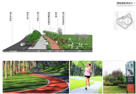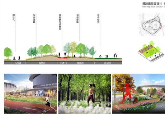 徐家匯體育公園將打造多層次的慢跑系統。通過聯動城市界面,利用人行道空間,結合街道斷面改造設計,營造安全舒適的沿街步道,與徐匯區的街道跑步網絡對接。在公園內部,形成串聯場館和戶外空間的地面慢跑道,線形靈活有趣,結合公園的不同功能布局,營造移步異景的跑步感受。