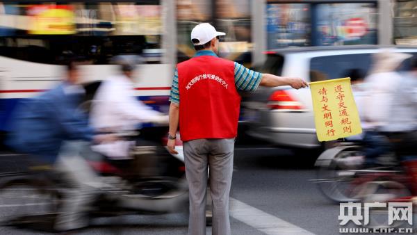上海市徐匯區天平街道退休職工劉大爺每天早晨7點半到8點半之間都會在徐家匯商圈的重要路口執勤。每天都有150余名志愿者出現在徐匯的40個主要交通路口,協助交警做好交通文明引導。徐匯區充分發動社會力量,爭創全國文明城區。