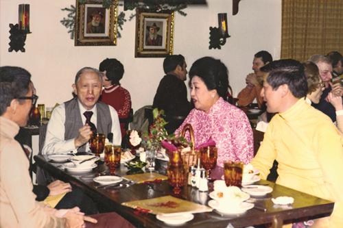 上世紀70年代,顧維鈞(左二)、嚴幼韻和朋友聚餐。