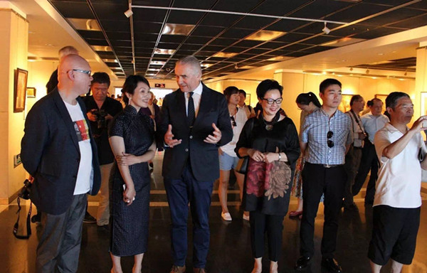 原上海中外文化藝術交流協會會長龔心瀚、劉振元、劉文慶,藝術總監劉文國、陳燮君,會長趙抗衛,常務副會長顧永樑,著名畫家夏葆元、魏景山,藝術評論家林明杰,知名學者王超鷹,上海視覺學院美術學院副院長陳耀明,德國駐上海總領事館大使Mr.Rothen以及德國北威州Geseke市市長Dr.Remco Van der Velden,艾菲德古堡改建項目設計團隊Atrium3等出席了開幕式。
