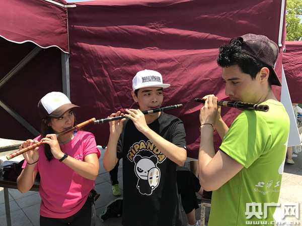 在競渡之余,作為承辦單位的華東理工大學為前來參加和觀摩比賽的外國留學生準備了一道文化大餐:穿著漢服彈古琴,品著粽子聽京劇……在隊員訓練和休整期間,該校學生社團“八仙過海、各顯神通”,向世界各地的留學生展示了琴藝、插花、漢服、書法、京劇等國粹,為外國留學生體驗中國的傳統(tǒng)文化提供了便利。正在手繪京劇臉譜的巴基斯坦留學生王凱之告訴記者,今天是自己初次接觸京劇,立刻就對這一“美麗的”中國傳統(tǒng)文化產(chǎn)生了濃厚興趣,并表示回校后一定會對其進行具體了解。