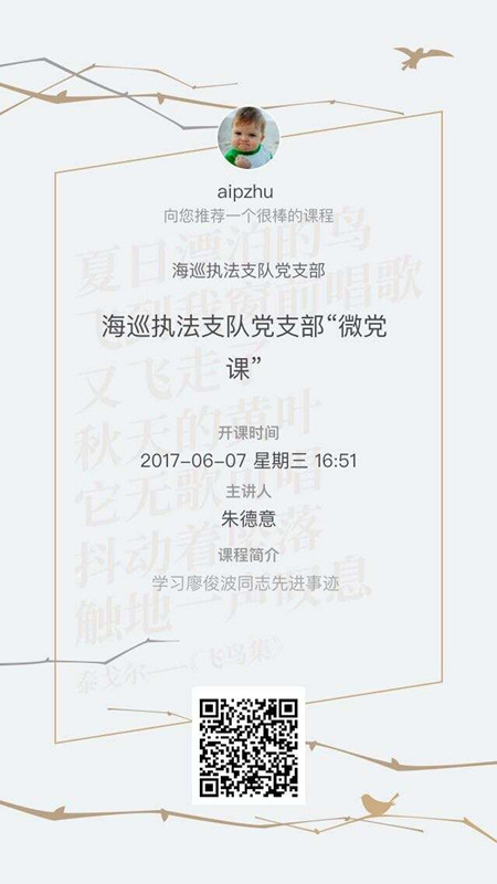 央廣網上海6月8日消息(記者傅聞捷 通訊員朱德意)“以前支部上黨課,要把大家集中到會議室里學習,不僅因為黨員崗位分布廣難以集中,而且學習效果還不太理想。現在方便了,大家隨時隨地掏出手機打開微信,就可以在線觀看黨課直播,進行互動學習,更方便更有效了。”近日,洋山港海事局海巡執法支隊的黨員小朱高興地告訴記者。