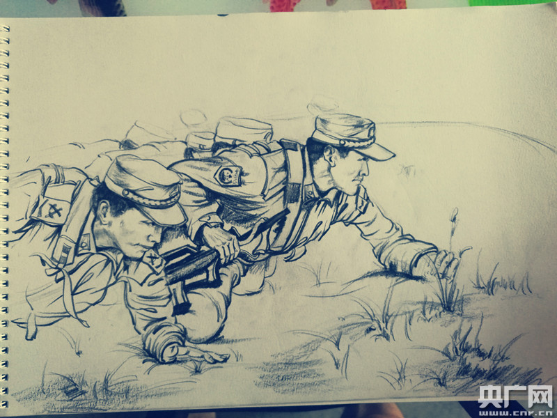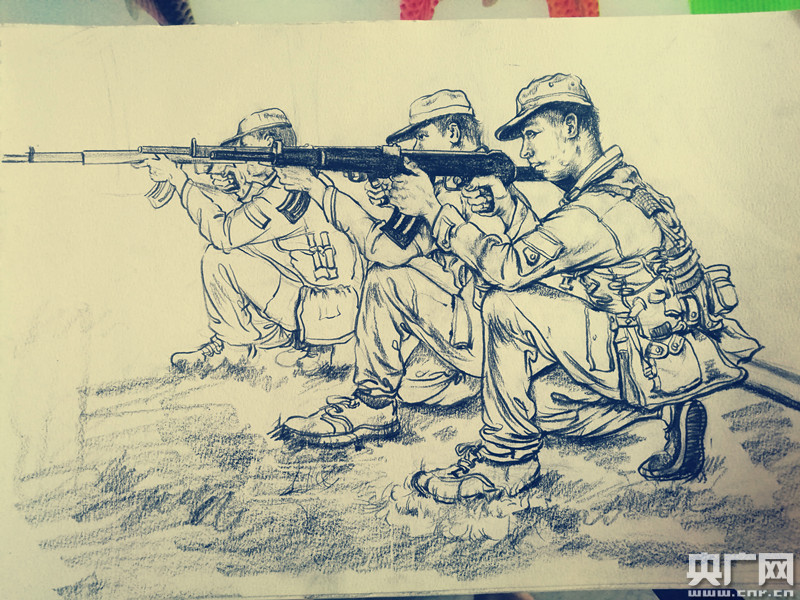 央廣網(wǎng)上海7月31日消息(記者吳善陽 唐奇云)在建軍90周年來臨之際,上海第二工業(yè)大學(xué)應(yīng)用藝術(shù)設(shè)計學(xué)院的一支暑期社會實踐團隊在走訪軍營后,手繪了近百幅速寫作品向軍人表達(dá)敬意。一個個負(fù)重越野的背影,一個個鐵絲網(wǎng)下匍匐前進(jìn)的畫面,被“95后”大學(xué)生以速寫的形式記錄下來。七月上旬,上海第二工業(yè)大學(xué)應(yīng)用藝術(shù)設(shè)計學(xué)院暑期社會實踐團隊一行20余人前往上海某軍區(qū),通過走訪軍營實地,以公益速寫、攝影的形式展現(xiàn)軍人精神。過程中,同學(xué)們親眼目睹了軍人們的訓(xùn)練演示,和他們進(jìn)行面對面的交流,參觀了宿舍等場所,對軍人這一神圣的職業(yè)有了更深的認(rèn)識。 -