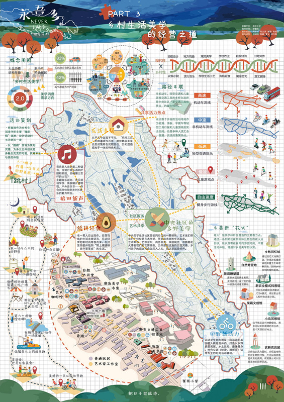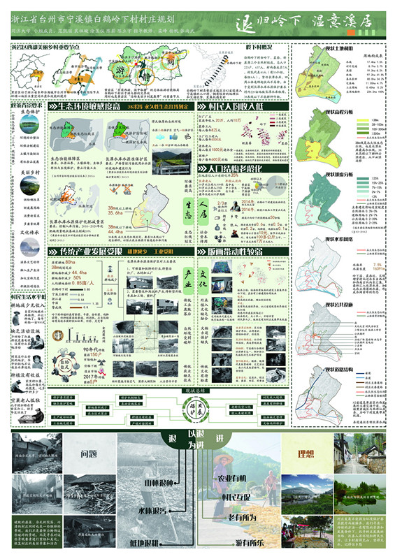 山林“退”耕、護山育林,水體“退”污、凈化水體、生產沼氣,低地“退”耕、修復土壤;結合村莊文化、農業、自然旅游資源,打造“農業有機”“文畫并進”“老有所為”“游有所樂”的宜居宜游美麗鄉村……這是同濟大學城鄉規劃專業一本科生團隊對浙江臺州市黃巖區寧溪鎮白鶴嶺下村所作的規劃設計方案。