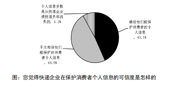 半數以上的消費者擔憂快遞公司無法有效保護消費者的個人信息調查數據顯示,約有48.6%的消費者表示“不太相信他們能保護好消費者個人信息”,8.3%的消費者認為“個人信息多數是從快遞企業或快遞員那流失的”。