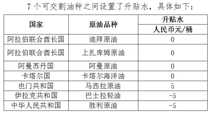 問:我國原油期貨合約標的為中質含硫原油,7個可交割油種之間是否設置升貼水?