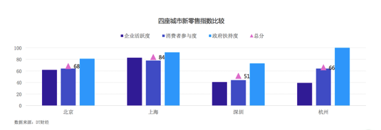 報告從企業活躍度、消費者參與度、政府扶持度等多個維度進行綜合分析,最終得出一系列新零售指數,用于評估一座城市的新零售活力。
