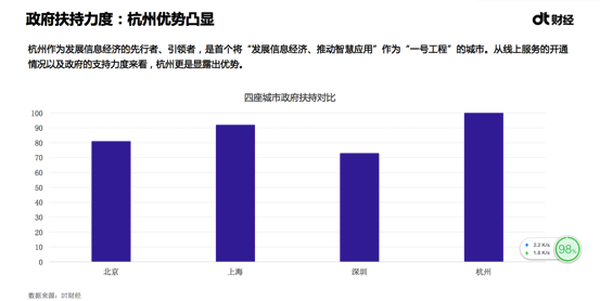 政府的參與度首先體現在線上服務的開通上,杭州是線上服務功能最多的城市,一共開通了26項便民服務,除了政務、醫療、交通等常見的領域外,還包含了體育場館預約等特色便民服務,這在客觀上提升了人們對新零售的認知和參與度。
