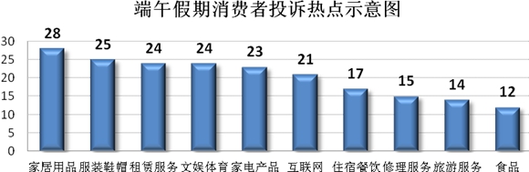 今年端午假期適逢“618”購物節,受電商頻密促銷等因素影響,線上消費投訴達235件,占假期投訴總量61%(同比上升8個百分點),其中,家居用品、服裝鞋帽、家電產品投訴分別為28件、25件、23件,占網購投訴比重較大,主要反映網購商品質量瑕疵、遞送延遲、售后服務不到位、夸大宣傳等問題。