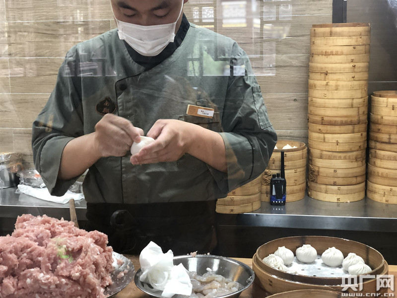 南翔饅頭店廚師正在制作小籠包(央廣記者楊靜 攝)