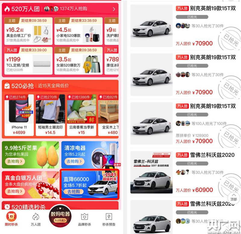 此前上!拔逦遒徫锕潯逼陂g,拼多多通過大額直降的方式推出了一批“五五折”汽車。參與活動的55輛汽車包括上汽集團新款凱迪拉克XT5、大眾途觀、大眾途昂等車型,每輛車最低直補超過10萬元,一亮相即遭網友秒光,引發全網矚目的“拼手速”大賽。