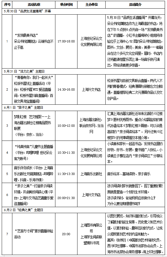上海世紀出版集團“品質生活直播周”活動表