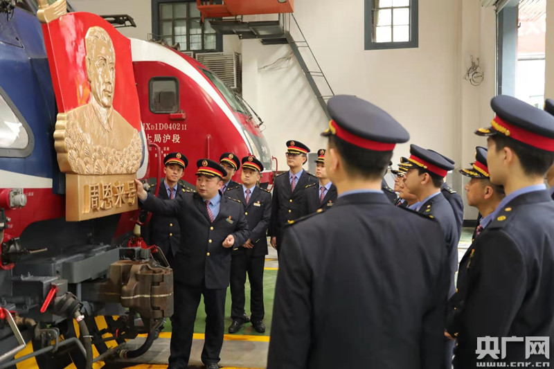 今天(2日),“周恩來號”機車組第十任、司機長計磊帶領機組黨員司機交流學習百年黨史和機車安全駕駛技術體會,傳承偉人精神。(央廣網發 陸應果攝)