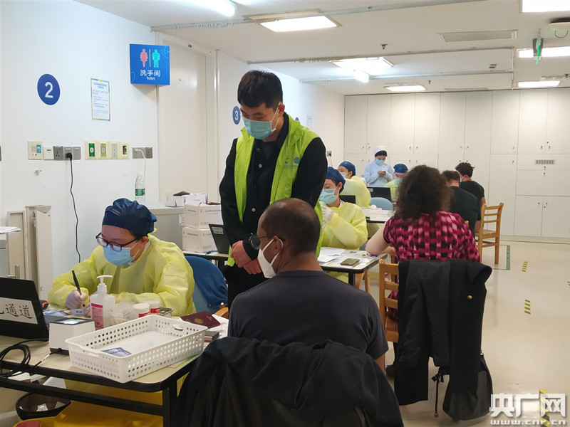 排隊等候區,工作人員耐心講解接種流程(央廣網記者林馥榆 攝)