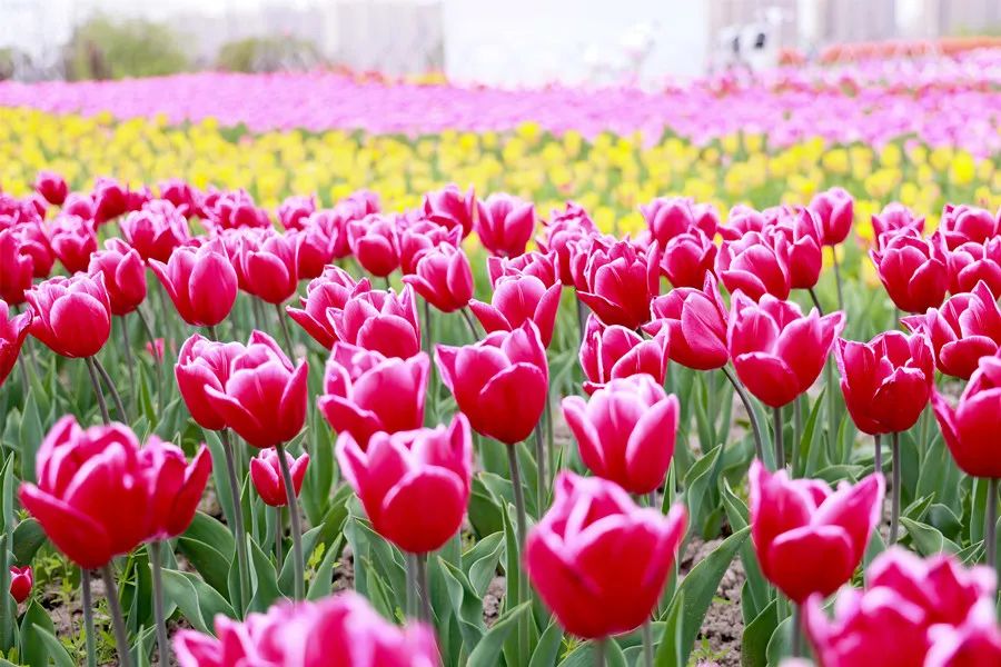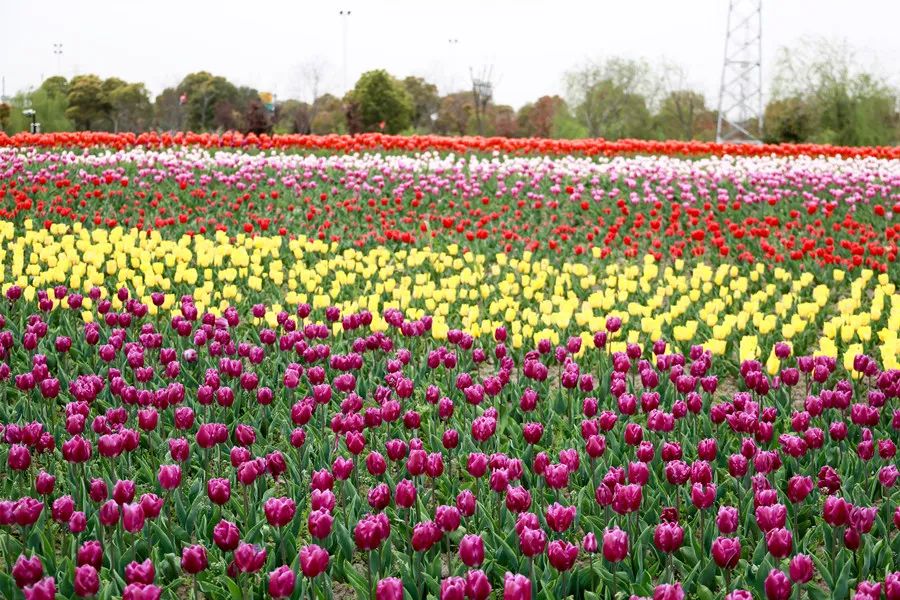 據了解,這片郁金香花海共有1200平方米,約6萬株郁金香,包含“世界寵兒”“快樂一代”“粉旗”等10個品種,分別呈橙色、紅色、粉色、白色、紅黃邊及紫色,目前郁金香已迎來盛花期,清明小長假期間市民可前往觀賞。