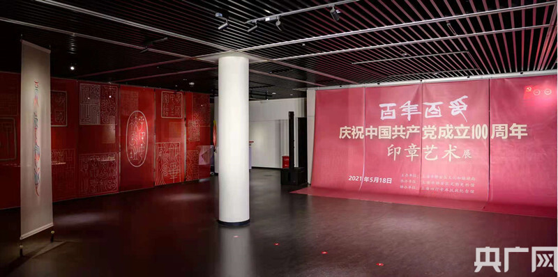 展覽位于上海四行倉(cāng)庫(kù)抗戰(zhàn)紀(jì)念館3樓臨展廳。現(xiàn)場(chǎng)共分為三個(gè)部分,分別是:紅色歷程,由百枚印章和邊拓組成的百幅懸掛圖片,宛如絢麗的紅色海洋,表現(xiàn)了中國(guó)共產(chǎn)黨“百年征程波瀾壯闊”;紅色印記,由手工精裱長(zhǎng)卷、雅體刺繡“中國(guó)共產(chǎn)黨萬(wàn)歲”和“不忘初心”、雅體瓷畫“江山萬(wàn)年青”等組成,表達(dá)了藝術(shù)家們“百年初心歷久彌堅(jiān)”的創(chuàng)作理念;紅色基因,展出百方印章以及由印章引申而出的紅色文創(chuàng),如印譜、打卡明信片、帆布包等,讓國(guó)潮把紅色文化帶給更多的人。