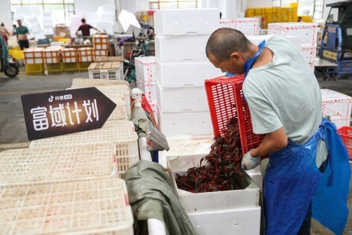 抖音電商推出的“富域計劃”旨在借助興趣電商,挖掘源頭好貨,幫助地方農特產品和品牌商家獲得市場新增量,助其銷往全國市場。湖北潛江被譽為“小龍蝦之鄉”,全市“蝦稻共作”面積達85萬畝,蝦—稻產業綜合產值達520億元,年加工能力35萬噸,加工出口量連續16年位居全國前列。