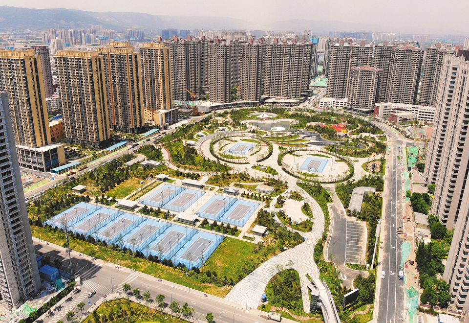 太原濱河體育公園展露新姿-新華網,6月4日,俯視之下,太原市濱河體育公園安靜坐落于汾河河畔,美麗壯觀。據了解,該公園與濱河體育中心相連,將承攬二青會網球比賽項目。會后將對市民開放,再次為省城增添一處運動休閑的絕佳場所。(記者 阮洋攝)