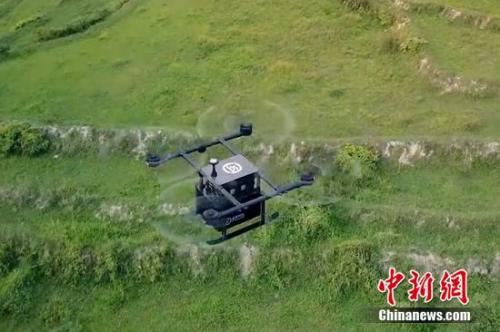 圖為正在運(yùn)送快遞包裹的無(wú)人機(jī)。
