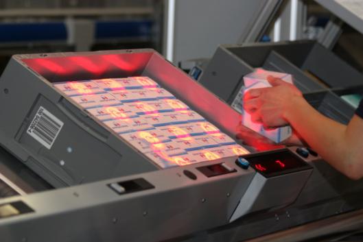 如果系統中提示有訂單需要揀選,旋轉貨架能迅速并且準確地找到含有訂單內商品的周轉箱,并自動把周轉箱送上傳送帶。當周轉箱到達工作站時,工作站的屏幕上會顯示每筆訂單需要揀選出的貨品和數量,作業人員根據指示拿貨即可。因此,揀選人員無需步行,在這一模式下,其揀選速度可以達到1200件/小時。據計算,這種速度是傳統人找貨揀選方式的10倍以上。
