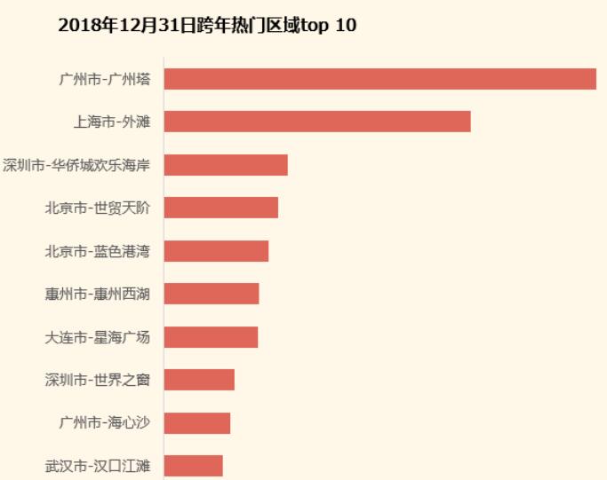 一年將盡,選擇一處絕佳的跨年地點(diǎn)迎接新年已經(jīng)成為大眾出游的重要儀式。《報(bào)告》顯示,預(yù)計(jì)2018年12月31日,全國(guó)十大熱門(mén)跨年地依次為廣州塔(廣州市)、外灘(上海市)、華僑城歡樂(lè)海岸(深圳市)、世貿(mào)天階(北京市)、藍(lán)色港灣(北京市)、惠州西湖(惠州市)、星海廣場(chǎng)(大連市)、世界之窗(深圳市)、海心沙(廣州市)、漢口江灘(武漢市)。