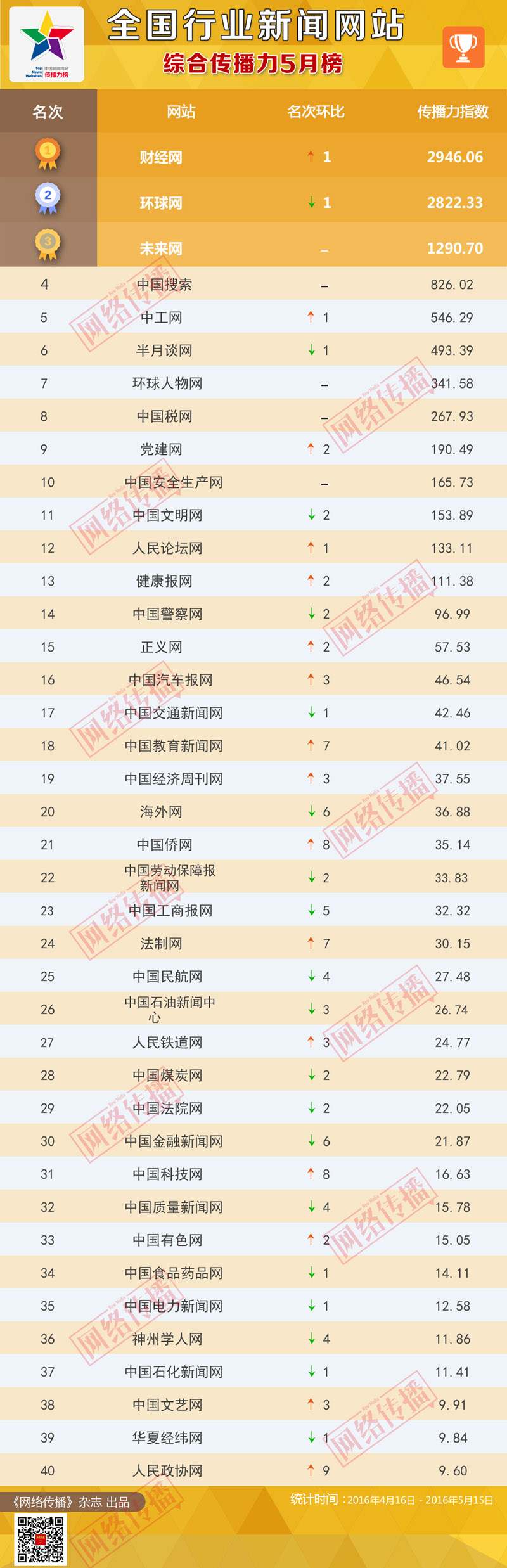 全國行業(yè)新聞網(wǎng)站傳播力2016年5月榜發(fā)布