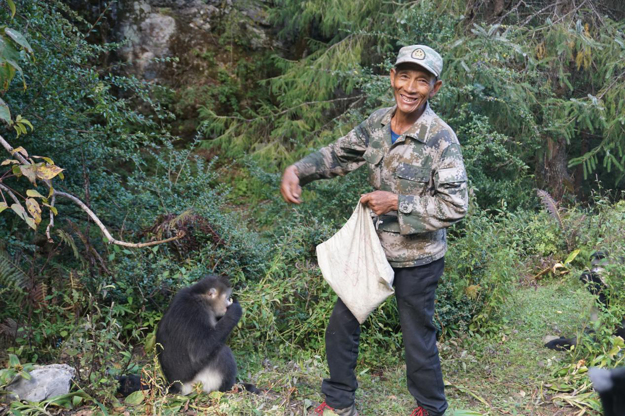 1997年,白馬雪山自然保護區招募護林員看山護猴,余建華主動應征并且一干就是23年。在這23年中,老余從令野生動物膽寒的獵人老余變成了滇金絲猴們的“保護傘”老余叔。