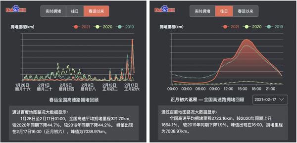 (2021春運以來及正月初六返程日的高速擁堵趨勢)
