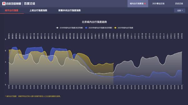 (2021春運以來北京市城內出行強度趨勢)