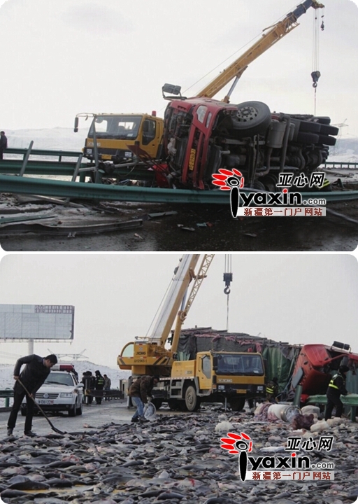 關鍵詞:新疆;連霍高速;魚貨車;村民哄搶