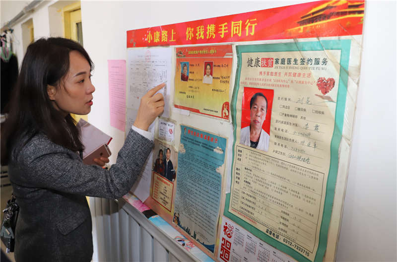 目前,劉花老人暫住在孫子家,家里的一面墻上貼著政府對(duì)劉花的幫助,包括貧困戶幫扶責(zé)任人聯(lián)系卡、健康扶貧家庭醫(yī)生簽約服務(wù)、住房安全等級(jí)明白卡、致貧困家庭的一封信等材料。