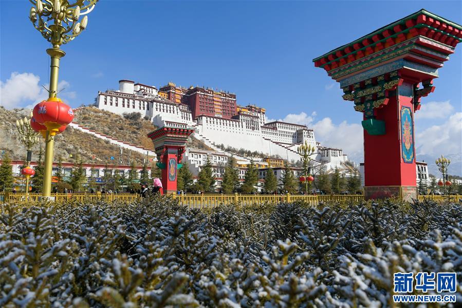•      2月23日,拉薩布達拉宮廣場前的松枝上覆蓋著積雪。 新華社記者 劉東君 攝