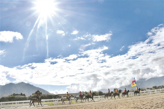 我市今年第一季度環境空氣質量優良率達百分之百,無輕度、中度、重度、嚴重污染天氣。圖為藍天白云下的拉薩賽馬場。 本報記者 貢嘎來松攝