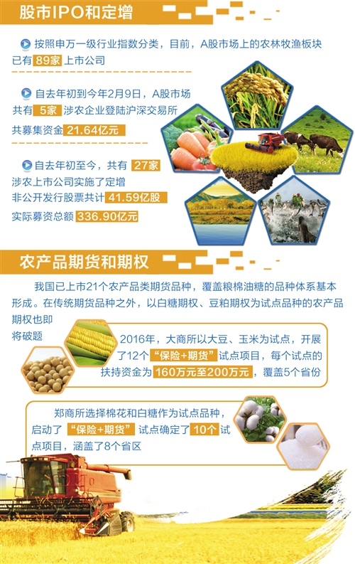 近日發(fā)布的中央一號文件明確提出,“支持符合條件的涉農企業(yè)上市融資、發(fā)行債券、兼并重組”,“深入推進農產品期貨、期權市場建設,積極引導涉農企業(yè)利用期貨、期權管理市場風險,穩(wěn)步擴大‘保險+期貨’試點”。這些表述從股票市場、期貨及衍生品市場等方面,指出了資本市場服務“三農”的發(fā)展方向。
