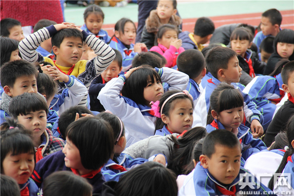 廣東汕頭云澳邊防派出所官兵在組織云澳中心小學的學生進行緊急疏散演練。劉建高 攝
