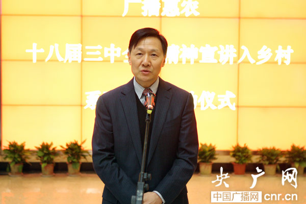 三中全會精神宣講入鄉村活動,是中央人民廣播電臺實施“廣播惠農工程”的又一重要舉措,也是國家電臺聯合中國農業銀行等涉農企業為農民進行公益服務、履行社會責任的又一有益嘗試。2012年12月起,中央人民廣播電臺利用創辦國家對農廣播頻率中國鄉村之聲的契機,實施國家電臺“廣播惠農工程”,讓廣播成為農村公共文化體系建設的有效手段之一,服務農民、惠及農民。目前在廣大農村,黨和國家的政策入戶存在“三少”現象,即針對農民的政策解讀少,對農民有具體指導的少,能給農民講明白的少。因此,利用廣播媒體的優勢,邀請熟悉三農政策甚至是參與制定政策的專家,及時、準確、專門地針對基層干部和農民群眾宣講三中全會精神,既有效,又切實,可以填補三中全會精神在農村宣傳的真空。