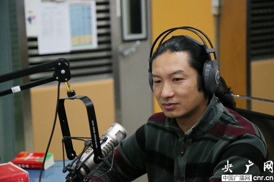 中央民族歌舞團歌隊隊長青年歌唱演員阿旺做客《中國大舞臺》(央廣網發 張曈攝)