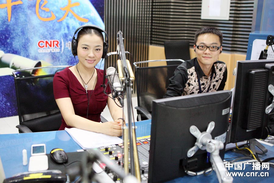 著名青年歌唱家陳思思與主持人胡凡在《中國大舞臺(tái)》直播間(中廣網(wǎng)記者陳江南_攝)